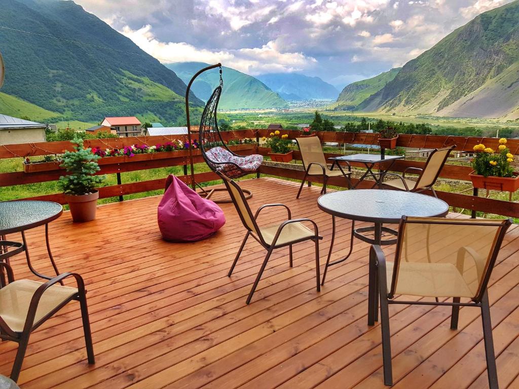 Het beschikt over 10 kamers met uitzicht op de bergen of de stad en u kunt genieten op uw balkon. Daarnaast is er een mooie tuin en een gemeubileerd terras met een panoramisch uitzicht op de Drievuldigheidskerk van Gergeti en het Kaukasusgebergte!