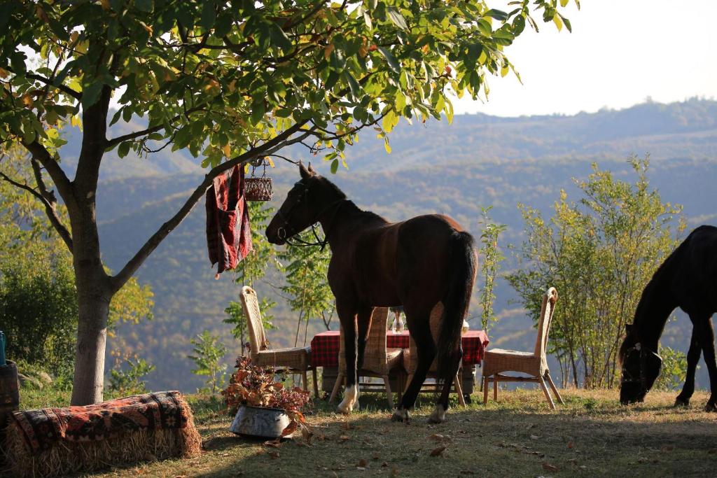 U kunt genieten van een op zichzelf staande plattelandservaring, ontspannend op het terras van comfortabele kamers met eigen badkamer, genietend van het uitzicht op het Kaukasusgebergte of de glooiende lappendeken van heuvels van Magaro. Hier, in een biergrot, kunt u genieten van ambachtelijk bier dat ter plekke wordt gebrouwen met ingrediënten van de hoogste kwaliteit en wilde seizoensproducten. Geniet van smakelijke, op bestelling gemaakte maaltijden met verse, lokale, seizoensgebonden producten die in hun eigen tuinen groeien of afkomstig zijn van de plaatselijke boeren.