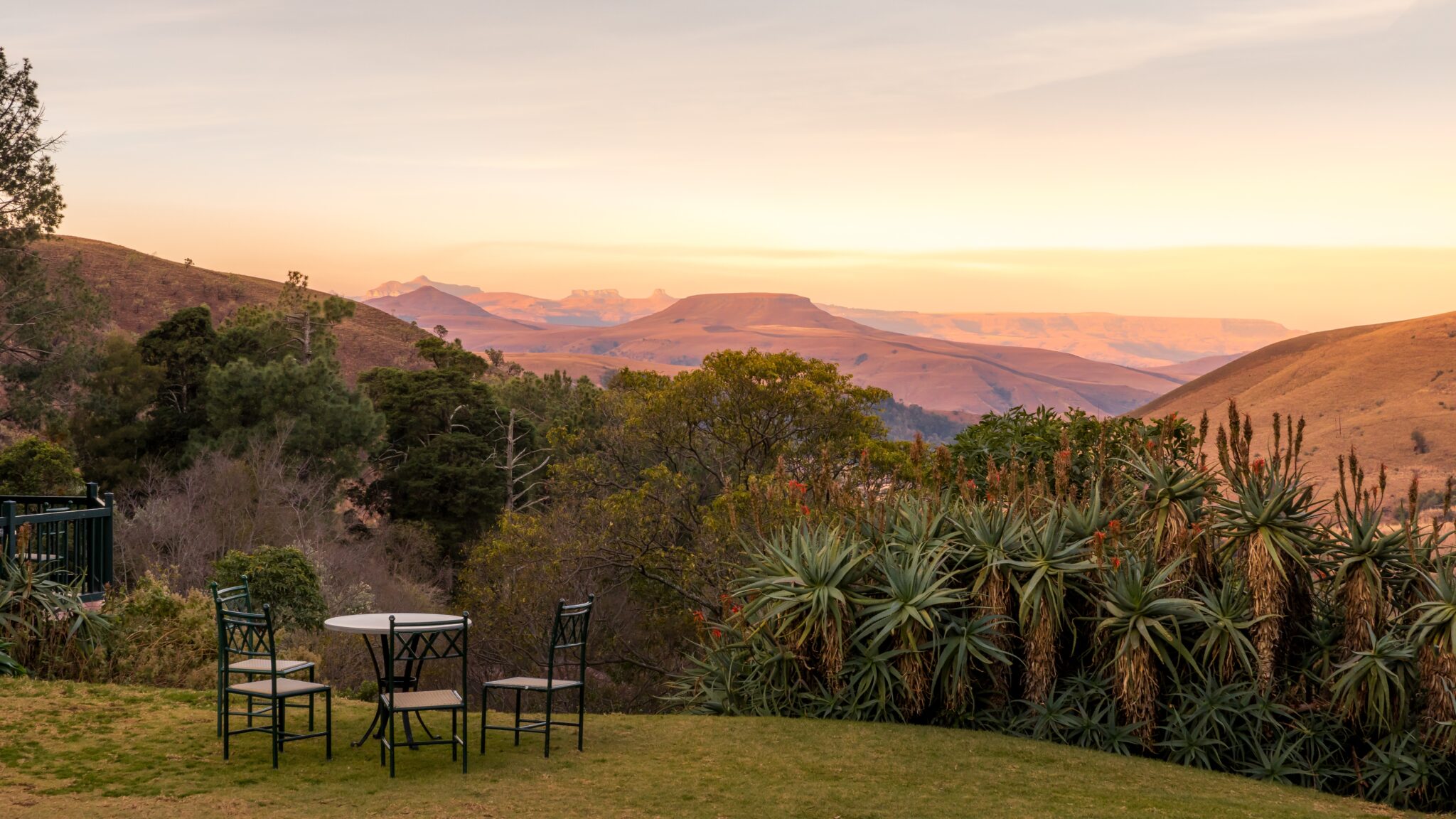 Na een ontspannen ontbijt haal je je huurauto op en begint je reis door het schilderachtige binnenland van KwaZulu-Natal. De route voert langs glooiende heuvels, landelijke dorpjes en weidse vergezichten tot je aankomt bij Three Tree Hill Lodge, aan de voet van de indrukwekkende Drakensbergen. Hier verblijf je drie nachten op basis van volpension. De lodge ademt een warme, huiselijke sfeer, met gezellige lounges en een uitnodigende veranda. ’s Avonds geniet je van een sfeervol diner bij het haardvuur, terwijl de sterren helder schitteren boven het berglandschap.