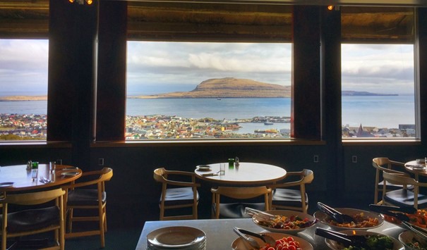 - Geweldig uitzicht over Tórshavn, Nólsoy en het fjord, terwijl u ontbijt en/of dineert